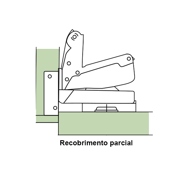 Porta com abertura de 165º, porta sobreposta, recobrimento parcial