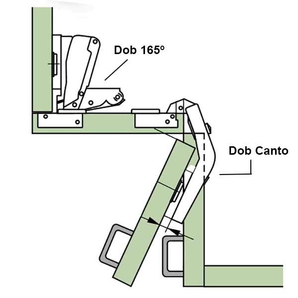 Abertura e angulação das dobradiças: