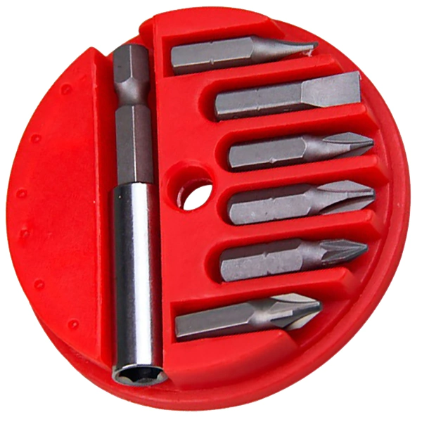 Composto por adaptador de 25mm, bit PH 1 e 2, bit PZ 1 e 2, bit SL 5 e 7